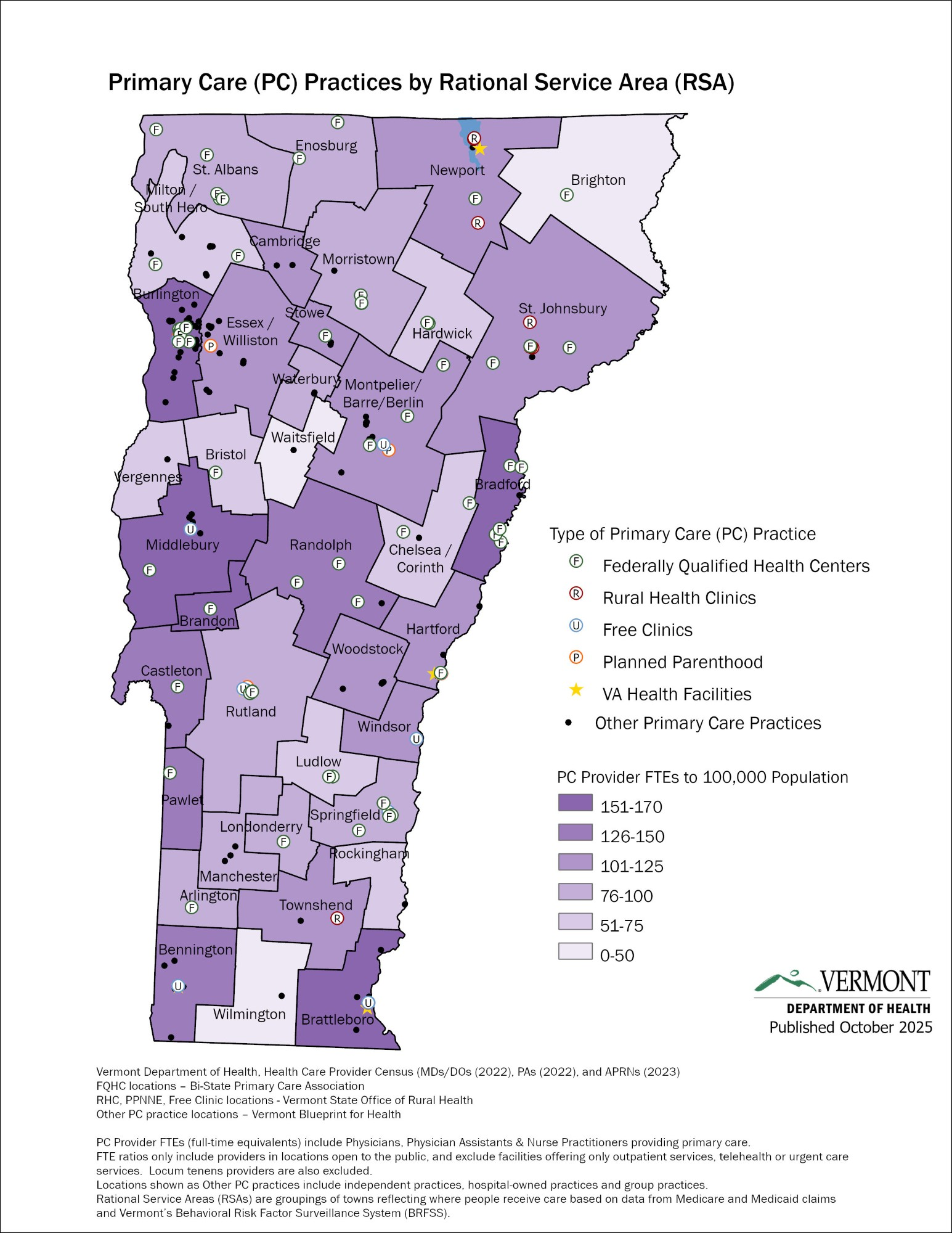 Many of these practices are Federally Qualified Health Center (FQHC) sites or Rural Health Clinics (RHCs), and are considered part of the health care safety net. Under Medicare and Medicaid rules, safety net providers are required to provide health care services to all Vermonters, regardless of insurance status and mostly with a sliding fee scale.